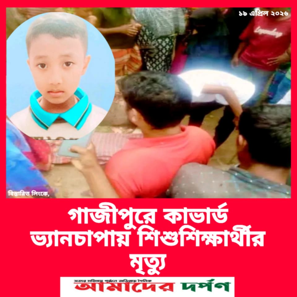 গাজীপুরের শ্রীপুরে কাভার্ড ভ্যানচাপায় তানভীর ইসলাম আরিয়ান ৮ নামে এক শিশুশিক্ষার্থীর মর্মান্তিক মৃত্যু হয়েছে। রোববার ১৯ এপ্রিল দুপুরে শ্রীপুর পৌরসভার কেওয়া পূর্বখণ্ড গ্রামের আনসার রোড এলাকায় কেওয়া পূর্বখণ্ড সরকারি প্রাথমিক বিদ্যালয়ের সামনে এ দুর্ঘটনা ঘটে।