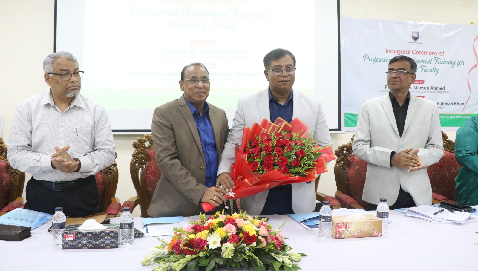 বিশ্ববিদ্যালয় মঞ্জুরি কমিশনের হিট প্রকল্পের আওতায় বিশ্বাংব্যাকের আর্থিক সহায়তায় দেশের বিশ্ববিদ্যালয় শিক্ষকদের দক্ষতা বৃদ্ধি, আধুনিক শিক্ষাদান পদ্ধতির প্রসার এবং পেশাগত সক্ষমতা উন্নয়নের লক্ষ্যে “Professional Development Training for University Faculty” শীর্ষক চার মাস মেয়াদি এক বুনিয়াদি প্রশিক্ষণ কর্মসূচির উদ্বোধনী অনুষ্ঠান (২৬ এপ্রিল )রবিবার সন্ধ্যা ৭ টায় বাংলাদেশ উন্মুক্ত বিশ্ববিদ্যালয় গাজীপুর ক্যাম্পাসের কেন্দ্রীয় সম্মেলন ও প্রশিক্ষণ হলে অনুষ্ঠিত হয়েছে।অনুষ্ঠানে প্রধান অতিথি হিসেবে উপস্থিত থেকে বাংলাদেশ বিশ্ববিদ্যালয় মঞ্জুরি কমিশন (ইউজিসি)-এর চেয়ারম্যান প্রফেসর ড. মামুন আহমেদ চারমাস মেয়াদি এ প্রশিক্ষণ কর্মসূচির উদ্বোধন করেন।