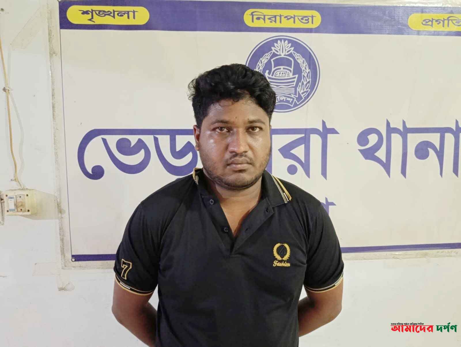 কুষ্টিয়ার ভেড়ামারা থানা পুলিশের এক বিশেষ অভিযানে মাদক মামলার ওয়ারেন্টভুক্ত কুখ্যাত মাদক ব্যবসায়ী তুহিন লাল ওরফে তুহিন আলীকে (৩০) গ্রেফতার করা হয়েছে। শুক্রবার (৩ এপ্রিল) সন্ধ্যা ৭টার সময় তার নিজ বাসভবন থেকে তাকে গ্রেফতার করা হয়।পুলিশ সূত্রে জানা গেছে, গ্রেফতারকৃত তুহিন আলী ভেড়ামারা থানাধীন উত্তর ভবানীপুর গ্রামের জহুরুল ইসলামের ছেলে। তার বিরুদ্ধে এলাকায় দীর্ঘদিন ধরে মাদক ব্যবসা পরিচালনার অভিযোগ রয়েছে এবং সে একটি মাদক মামলার ওয়ারেন্টভুক্ত পলাতক আসামি ছিল।গোপন সংবাদের ভিত্তিতে ভেড়ামারা থানার একটি চৌকস টিম উত্তর ভবানীপুর এলাকায় তুহিনের নিজ বাড়িতে অভিযান চালায়। পুলিশের উপস্থিতি টের পেয়ে পালানোর চেষ্টা করলেও শেষ রক্ষা হয়নি তার। অভিযানে নেতৃত্বদানকারী পুলিশ কর্মকর্তা জানান, তুহিন লাল এলাকার চিহ্নিত মাদক ব্যবসায়ী এবং তার গ্রেফতারের ফলে এলাকায় স্বস্তি ফিরে আসবে।ভেড়ামারা থানার অফিসার ইনচার্জ (ওসি) জানান, মাদকের বিরুদ্ধে জিরো টলারেন্স নীতি ঘোষণা করা হয়েছে। কুখ্যাত এই মাদক ব্যবসায়ীকে যথাযথ আইনি প্রক্রিয়ার মাধ্যমে আদালতে সোপর্দ করা হবে। এলাকাকে মাদকমুক্ত করতে এ ধরনের অভিযান ভবিষ্যতে আরও জোরদার করা হবে বলেও তিনি হুঁশিয়ারি দেন।