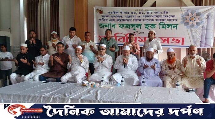 গাজীপুর মহানগরীর পূবাইল থানাধীন ৪২ নং ওয়ার্ডের তালটিয়া হাজারি রিসোর্টের কনফারেন্স রুমে পূবাইল থানা এলাকার অন্তর্গত ৪০,৪১,৪২ নং ওয়ার্ডের সকল মসজিদ-মাদরাসার খতিব, ইমাম ও অধ্যক্ষদের সঙ্গে মতবিনিময় সভা অনুষ্ঠিত। শনিবার (২০ শে সেপ্টেম্বর) দুপুরে উক্ত মত বিনিময় সভায় প্রধান অতিথি হিসেবে উপস্থিত ছিলেন গাজীপুর ৫ আসনের জননন্দিত জননেতা জনাব এ কে এম ফজলুল হক মিলন ।
