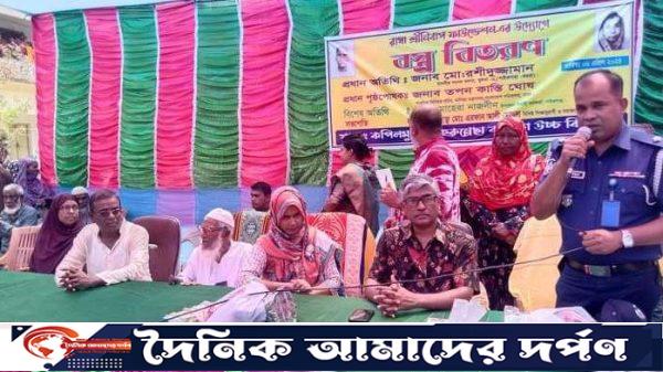 গণপ্রজাতন্ত্রী বাংলাদেশ সরকারের বাণিজ্য মন্ত্রণালয়ের সিনিয়র সচিব তপন কান্তি ঘোষের বাবা মায়ের নামে প্রতিষ্ঠিত রাধা শ্রীনিবাস ফাউন্ডেশনের উদ্যোগে অসহায় ছিন্নমূল মানুষের মাঝে বস্ত্র বিতরণ করা হয়েছে ৷ শনিবার (৬ই এপ্রিল) কপিলমুনি মেহেরুন্নেছা বালিকা উচ্চ বিদ্যালয়ের মাঠ প্রাঙ্গনে বিশিষ্ট সমাজসেবক আলহাজ্ব মোঃ এরফান আলী মোড়লের সভাপতিত্বে সাংবাদিক ও মানবধিকার কর্মী মোস্তাফিজুর রহমান পারভেজ এর সঞ্চালনায় অনুষ্ঠিত বস্ত্র বিতরণ অনুষ্ঠানে প্রধান অতিথি ছিলেন খুলনা-৬ (পাইকগাছা-কয়রার) এমপি মোঃ রশীদুজ্জামান৷বিশেষ অতিথি ছিলেন বাণিজ্য মন্ত্রালয়ের সিনিয়র সচিব তপন কান্তি ঘোষ, পাইকগাছা উপজেলা নির্বাহী অফিসার মাহেরা নাজনীন,পাইকগাছা থানা অফিসার ইনচার্জ মোঃ ওবাইদুর রহমান, উপজেলা আওয়ামীলীগের যুগ্ম সাধারণ সম্পাদক আনন্দ মোহন বিশ্বাস,কপিলমুনি ইউপি চেয়ারম্যান মোঃ কওছার আলী জোয়ার্দ্দার, কপিলমুনি মেহেরুন্নেছা বালিকা উচ্চ বিদ্যালয়ের প্রধান শিক্ষিকা রহিমা আখতার শম্পা,কপিলমুনি ইউনিয়ন আওয়ামীলীগের সাধারণ সম্পাদক শেখ ইকবাল হোসেন খোকন সহ স্থানীয় গণ্যমান্য ব্যক্তিবর্গ উপস্থিত ছিলেন।