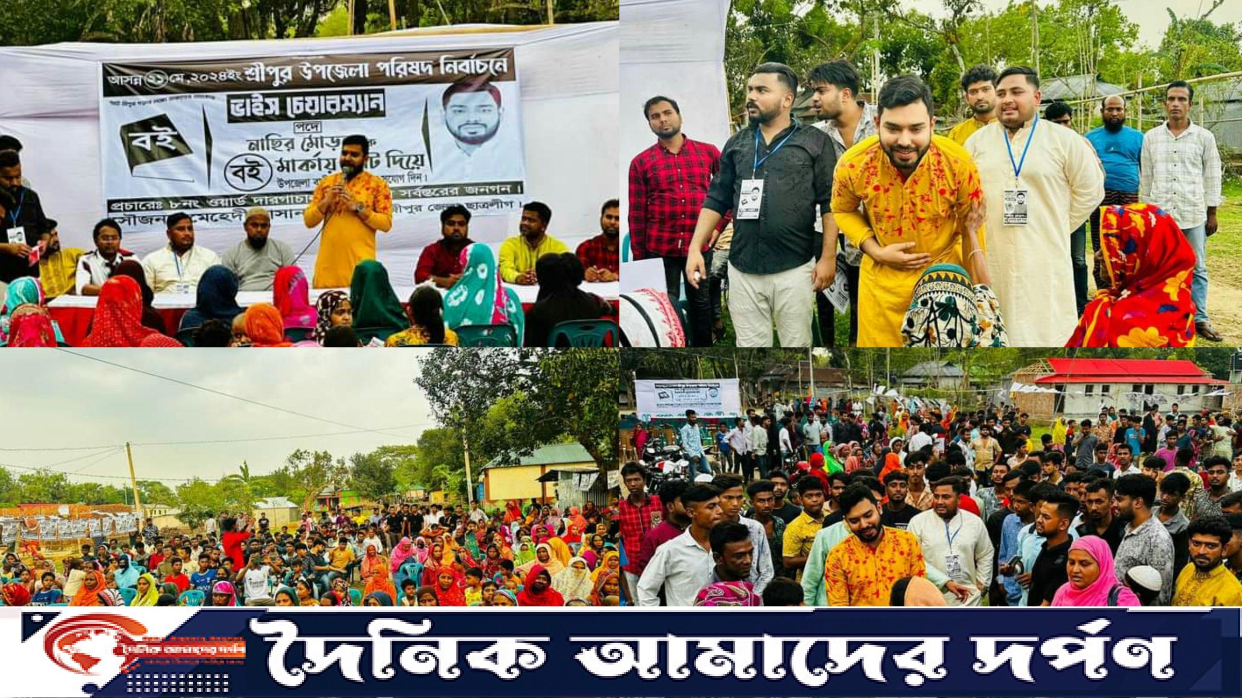আসন্ন শ্রীপুর উপজেলা পরিষদ নির্বাচনে ভাইস চেয়ারম্যান প্রার্থী নাছির মোড়লের পক্ষে গনসংযোগ ও লিফলেট বিতরণ, জেলা ছাত্রলীগ নেতা মোঃ মেহেদী হাসান শিহাব