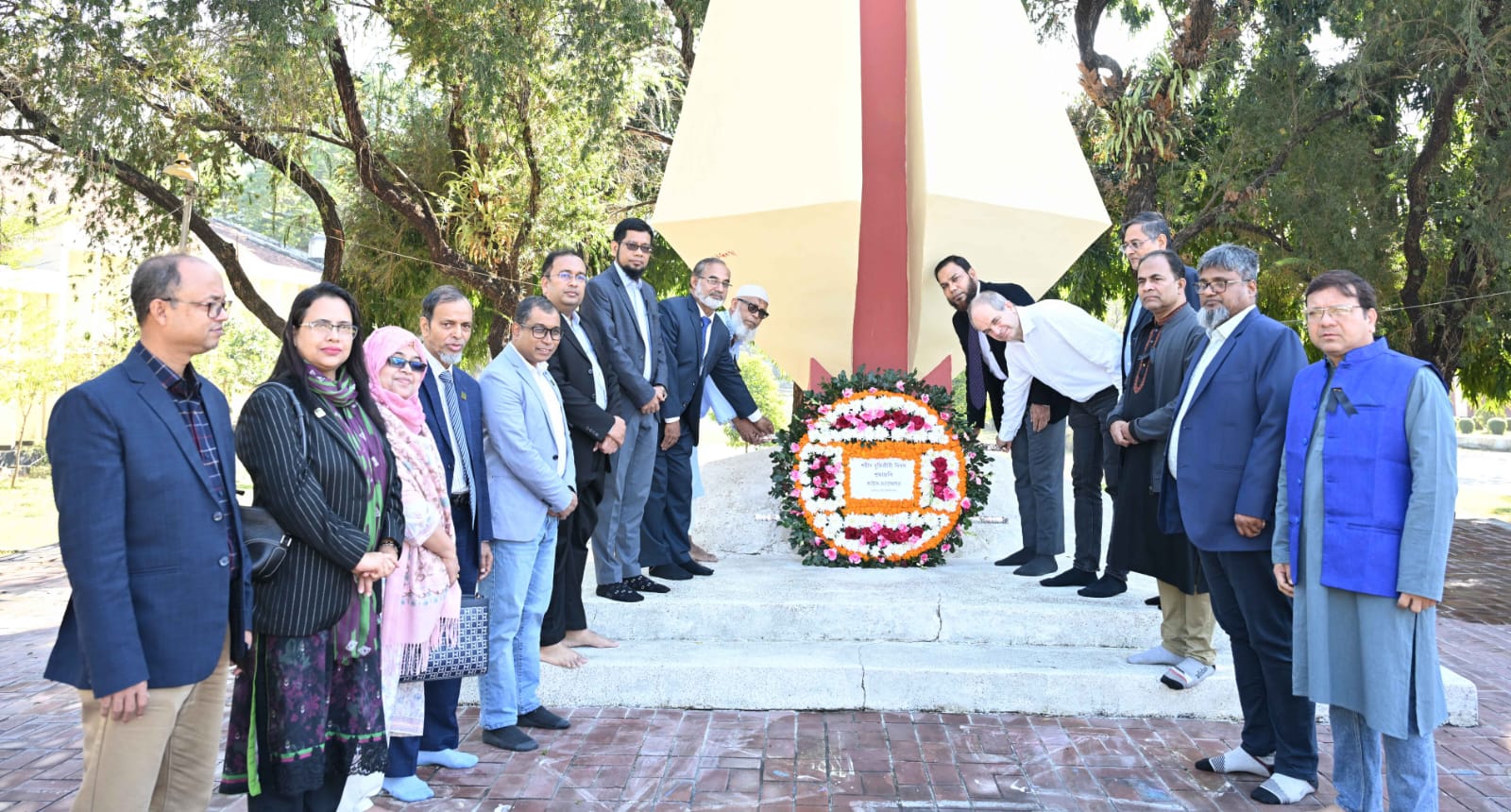 জাতির শ্রেষ্ঠ সূর্য সন্তানদের প্রতি গভীর শ্রদ্ধা ও বিনম্র ভালোবাসায় গাজীপুর কৃষি বিশ্ববিদ্যালয়ে (গাকৃবি) যথাযোগ্য মর্যাদায় পালিত হয়েছে শহিদ বুদ্ধিজীবী দিবস ২০২৫। মহান মুক্তিযুদ্ধের চূড়ান্ত লগ্নে ১৯৭১ সালের ১৪ ডিসেম্বর শহিদ হওয়া দেশের শ্রেষ্ঠ শহিদ বুদ্ধিজীবীদের স্মরণে দিনব্যাপী নানা কর্মসূচির মধ্য দিয়ে বিশ্ববিদ্যালয় পরিবার তাদের প্রতি শ্রদ্ধা নিবেদন করে। দিবসটির সূচনা হয় বিশ্ববিদ্যালয় ক্যাম্পাসে জাতীয় পতাকা অর্ধনমিত রাখার মাধ্যমে। একই সঙ্গে বিশ্ববিদ্যালয়ের ৩৬ শে জুলাই চত্বরে একটি কালো পতাকা রেখে জাতির শোক ও বেদনার প্রতীকী বহিঃপ্রকাশ ঘটানো হয়। সকাল সাড়ে ৯টায় বিশ্ববিদ্যালয়ের শিক্ষক, কর্মকর্তা, কর্মচারী ও শিক্ষার্থীরা কালো ব্যাজ ধারণ করে শহিদ বুদ্ধিজীবীদের প্রতি সম্মিলিত শ্রদ্ধা জানান। এরপর ভাইস-চ্যান্সেলর প্রফেসর ড. জিকেএম মোস্তাফিজুর রহমান এর নেতৃত্বে ডিন, পরিচালক, শিক্ষক-শিক্ষার্থী, কর্মকর্তা-কর্মচারীদের সমবেত অংশগ্রহণে একটি শোক র্যালি বের হয়। নীরবতা ও শোকের আবহে র্যালিটি ক্যাম্পাস প্রদক্ষিণ করে বিশ্ববিদ্যালয়ের কেন্দ্রীয় শহিদ মিনারে গিয়ে শেষ হয়। সেখানে উপাচার্য শহিদ বুদ্ধিজীবীদের প্রতি গভীর প্রদ্ধা নিবেদন করে পুষ্পস্তবক অর্পণ করেন। পরবর্তীতে শিক্ষক সমিতি ও উপস্থিত শিক্ষকবৃন্দ পুষ্পস্তবক অর্পণ করেন। শ্রদ্ধা নিবেদন পর্ব শেষে পরিচালক (ছাত্রকল্যাণ) প্রফেসর ড. মোহাম্মদ শরীফ রায়হানের সঞ্চালনায় ১৪ ডিসেম্বরের শহিদ বুদ্ধিজীবীদের স্মরণে শহিদ মিনারের পাদদেশে একটি তাৎপর্যপূর্ণ সংক্ষিপ্ত আলোচনাপর্ব অনুষ্ঠিত হয়। আলোচনায় অংশগ্রহণ করেন উপাচার্য প্রফেসর ড. জিকেএম মোস্তাফিজুর রহমান, উপ-উপাচার্য প্রফেসর ড. এম. ময়নুল হক, ট্রেজারার প্রফেসর ড. মোঃ সফিউল ইসলাম আফ্রাদ, সুইজারল্যান্ডের এগ্রোস্পেস এর প্রধান ড. স্টিফেন মান, শিক্ষক সমিতির সভাপতি প্রফেসর ড. মোঃ আবু আশরাফ খান, সাধারণ সম্পাদক প্রফেসর ড. মোঃ মসিউল ইসলাম, রেজিস্ট্রার মোঃ আবদুল্লাহ্ মৃধা এবং সহকারী রেজিস্ট্রার (আইন ও এস্টেট) আবু হানিফ পালোয়ান। এ সময় বক্তারা বলেন, "শহিদ বুদ্ধিজীবীদের আত্মত্যাগ জাতির ইতিহাসে এক অনন্য দৃষ্টান্ত, যা নতুন প্রজন্মকে দেশপ্রেম, মানবতা ও নৈতিকতার আলোকে আলোকিত করে চলেছে। তবে শহিদদের আত্মত্যাগ যেন ভূলুণ্ঠিত না হয় সেদিকে সতর্ক থাকার আহ্বান জানান তাঁরা।" পরে উপাচার্য এ ঐতিহাসিক দিবসের তাৎপর্যের উপর জ্ঞানগর্ব বক্তব্য প্রদান করেন। বক্তব্যে উপাচার্য শহিদদের আত্মার মাগফিরাত কামনা করে বলেন, " জাতিকে মেধাশূন্য করার লক্ষ্যেই পাক ও তাদের দোসররা আমাদের বুদ্ধিজীবীদের হত্যা করেছিল। সেই ১৭৫৭ সালে যেমন মীর জাফরদের কারণে ২শ বছ