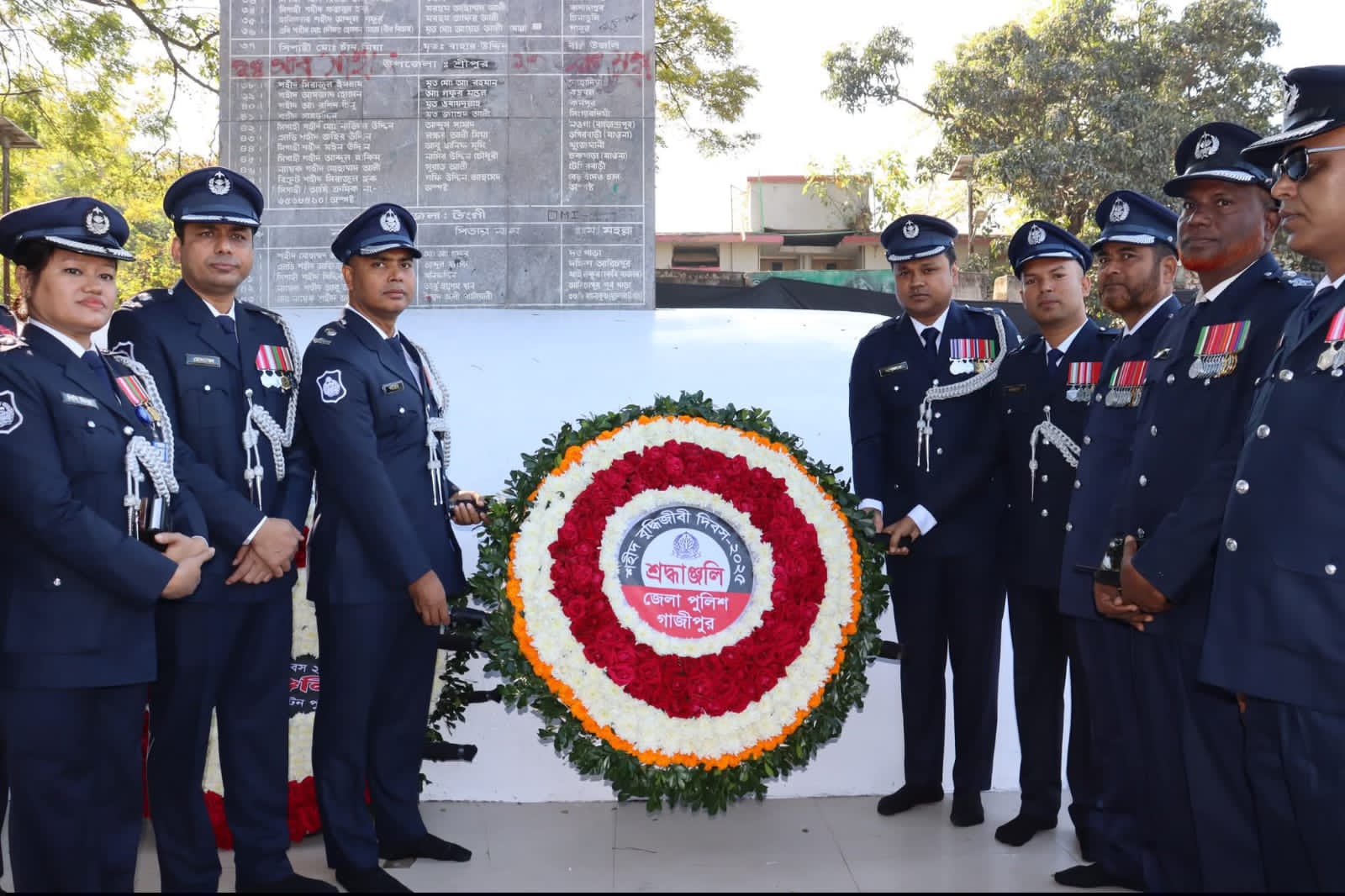 গাজীপুর জেলা পুলিশের পক্ষে পুষ্পস্তবক অর্পণ করেন অতিরিক্ত পুলিশ সুপার (প্রশাসন ও অর্থ) মোঃ আবু খায়ের, বিপিএম অতিরিক্ত পুলিশ সুপার (ক্রাইম অ্যান্ড অপস্) খন্দকার আশফাকুজ্জামান, অতিরিক্ত পুলিশ সুপার (ডিএসবি) মোহাম্মদ মোজাম্মেল হোসেন, অতিরিক্ত পুলিশ সুপার সদর সার্কেল লিপি রানী সিনহাসহ জেলা পুলিশের ঊর্ধ্বতন কর্মকর্তাবৃন্দ।