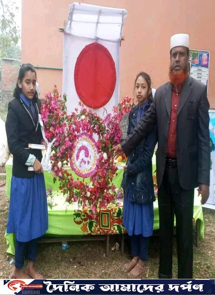 বাঁশ দিয়ে শহিদ মিনার তৈরি করে ধর্মপাশায় শিশুদের শ্রদ্ধা,